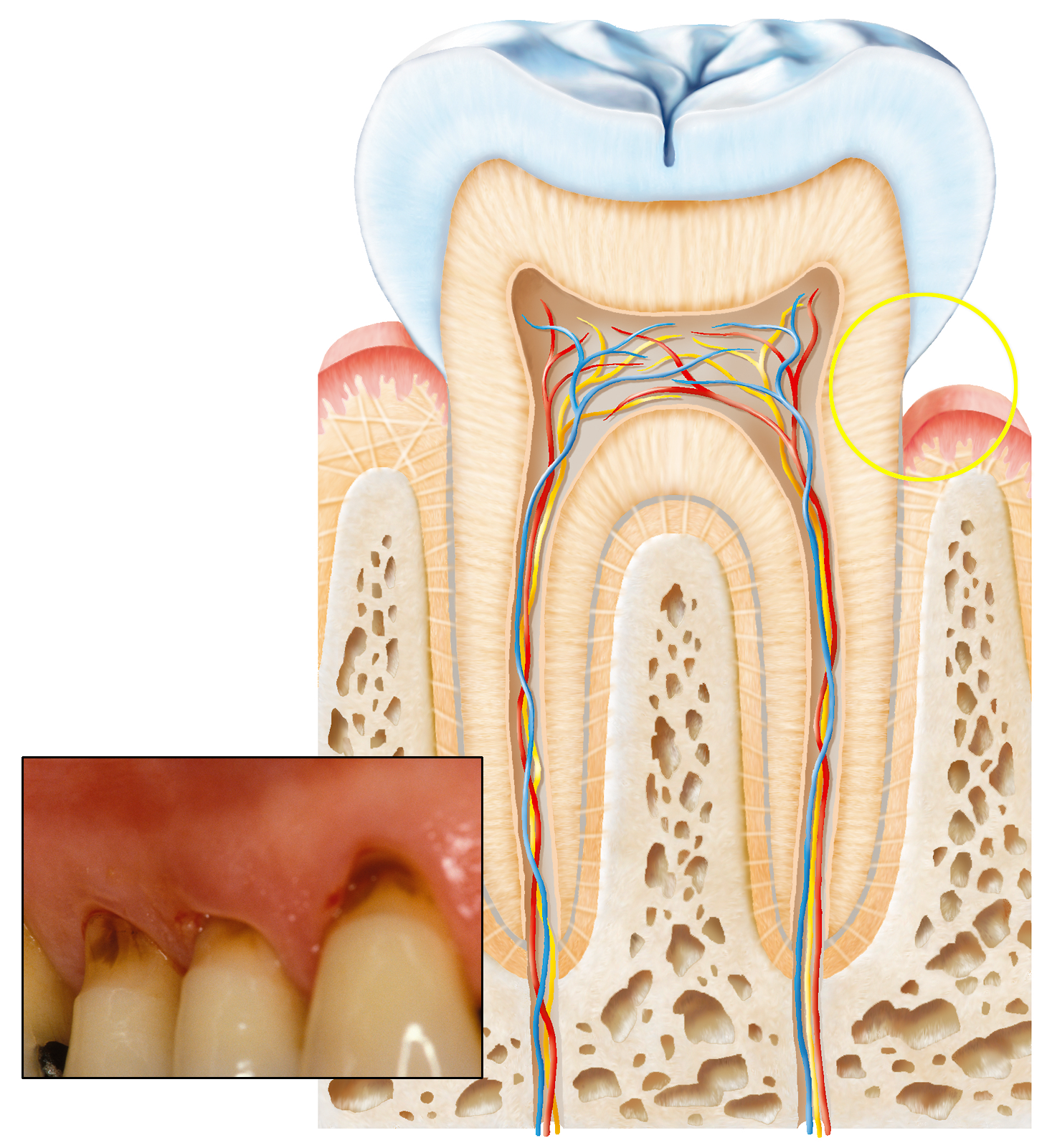 Freiliegende Zahnhälse können durch falsches Zähneputzen einmal so aussehen.