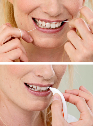 Lassen Sie sich von Ihrem Zahnarzt oder Ihrer Dentalhygienikerin zeigen, welches Hilfsmittel für Sie am besten geeignet ist.