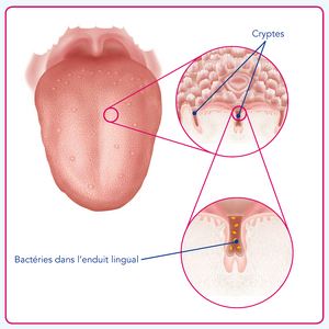 Les patients atteints d'halitose présentent un dépôt sur la langue avec une densité de bactéries par unité de superficie 25 fois plus élevée que chez les personnes sans halitose. C'est pourquoi le nettoyage de la langue est particulièrement important chez ces patients.