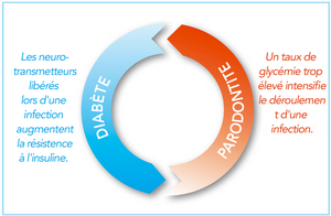 - La parodontite influence négativement le taux de glucose dans le sang aussi bien chez les personnes diabétiques que chez les personnes non diabétiques et augmente ainsi le risque d'apparition d'un diabète