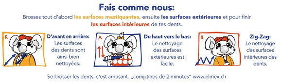 S'exercer au brossage des dents côté langue à partir de la maternelle dans l'ordre suivant: «surface de mastication, faces extérieures, puis faces intérieures.»